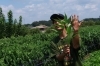 丸オクラをチョキン!!みんな上手に収穫しました!