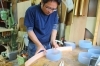 アイロンで熱を加え、木を曲げていきます。