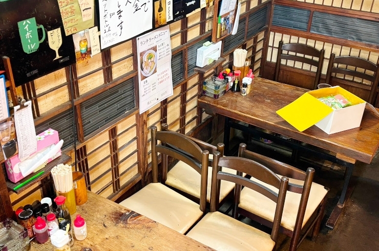 4人座れるテーブル席が2つ、カウンターが5席あります♪